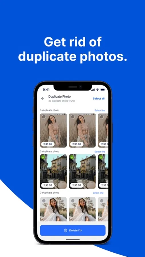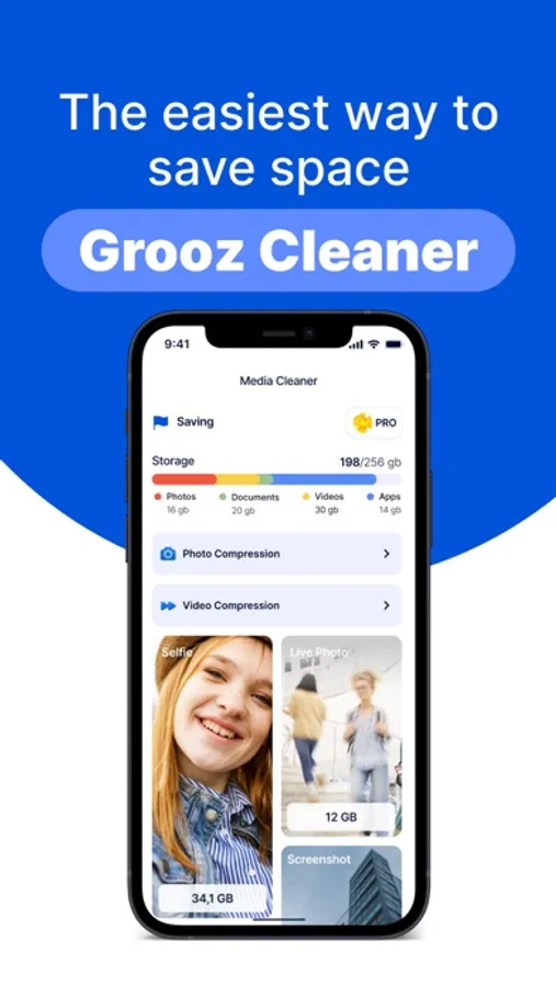 Grooz Cleaner finds, lists, and deletes your duplicate photos and videos on your device using its powerful algorithms.