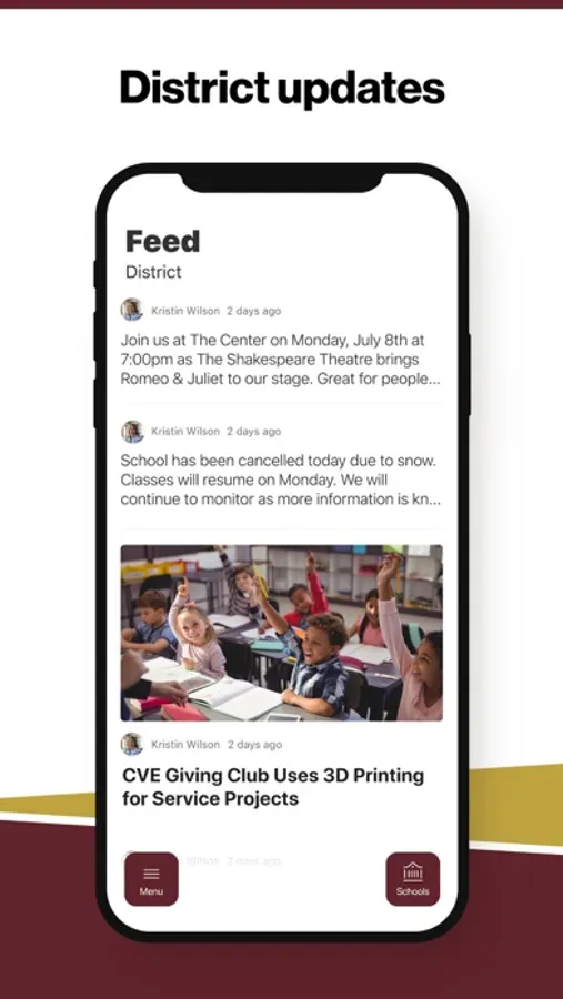 In the Live Feed is where you'll find updates from the administration about what's going on in the district right now. Whether that's celebrating a student's success, or reminding you about an upcoming deadline.