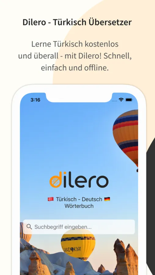 Lerne Türkisch kostenlos und überall - mit Dilero! Schnell, einfach und offline.