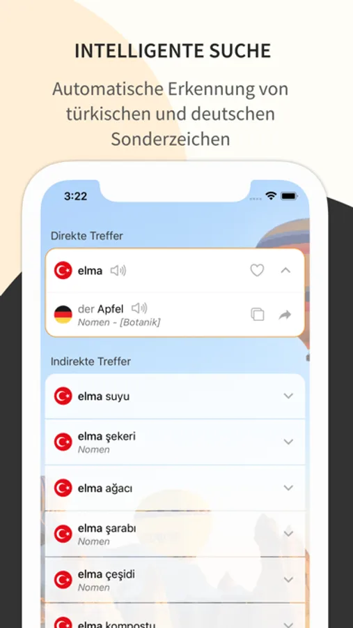 Das Wörterbuch ermöglicht die automatische Erkennung von türkischen und deutschen Sonderzeichen und erleichtert so die Suche nach bestimmten Wörtern.