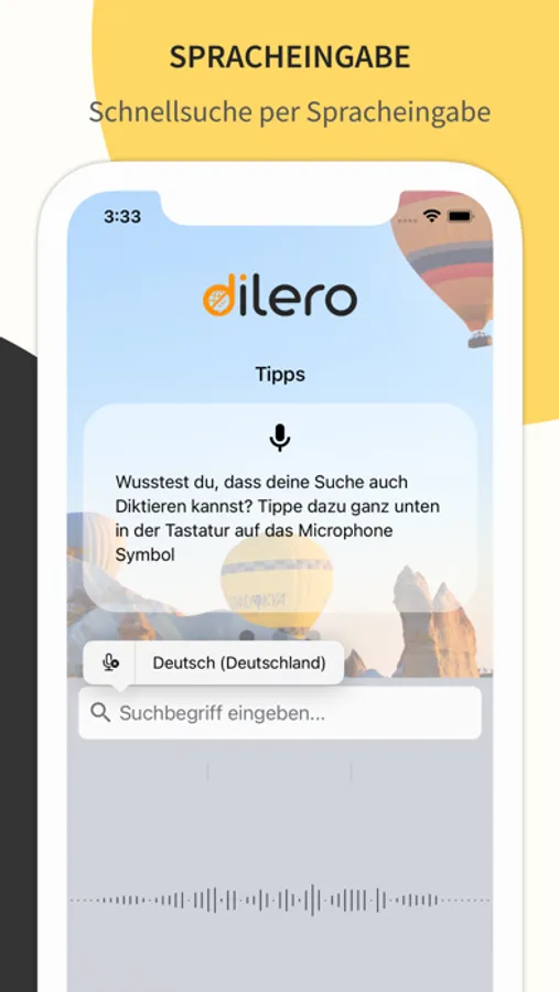 Dilero ist ein kostenloses Türkisch-Deutsch-Wörterbuch mit über 150.000 Übersetzungen und grammatikalischen Eigenschaften, das auch für Anfänger geeignet ist. Die Suche erfolgt einfach und schnell per Spracheingabe oder durch Tippen. Es verfügt über eine intuitive Benutzeroberfläche, einen Offline-Modus, eine Sprachausgabe der Texte und eine stets aktuelle Datenbank.