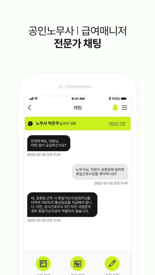 (급여매니저) 4대보험 및 임금, 고용지원금 신청에 대해 궁금한 사항이 있으면 채팅을 통해서 수시로 상담을 진행합니다.