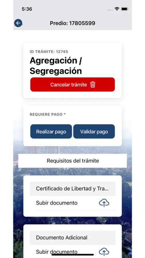 • Historial de los servicios digitales catastrales que se hayan realizado a través de la APP.