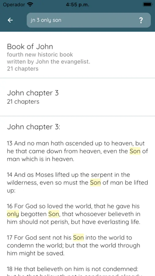 Search Engine: As aforementioned, we have spent a great deal of time working on perfecting a search engine that is worthy to be called such. As avid Students of the Bible, we have been testing these design features for some time now and believe that you won't be disappointed. Here's an example of what we mean: "jn 5 Jesus love" finds all verses in John chapter 5 containing Jesus and Love. Isn't that simple? There's more too. You can find out the rest of these features by downloading the app and trying it for yourself.