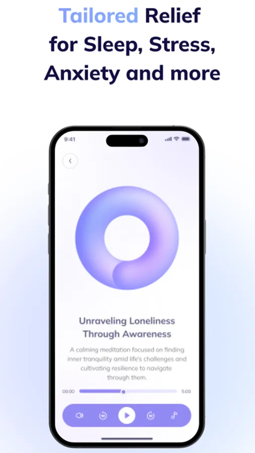 * AI-Personalized Meditations: We pull from your unique life experiences to offer meditations that are always specific to your life and needs. Whether you're navigating a stress-inducing life change or just need help getting to sleep and stop worrying about life, the guidance is personalized just for you.