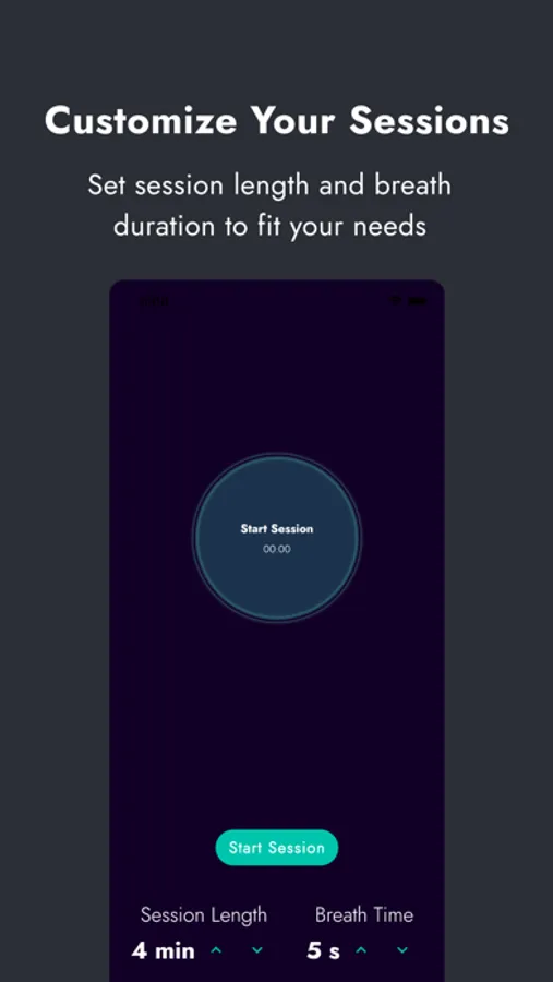Customized Breathing Sessions: Tailor your sessions by choosing the session length and breath duration to fit your personal needs and preferences.
