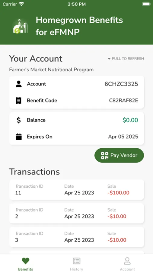 Our electronic benefit app brings online connectivity to your state's best produce, so it is much easier to bring it to market, or to your table. Use your virtual wallet to access your State administered benefits to purchase fresh products from your local Farmer’s Market or use your Homegrown Benefits application to redeem benefits while selling your fresh produce and products. Either way, your ability to transact while using Homegrown Benefits for eFMNP will become much more efficient. This app allows for real-time balance review, transaction review, and benefit administration. And just as important, it helps facilitate both your state's economic vitality and the health of its families.