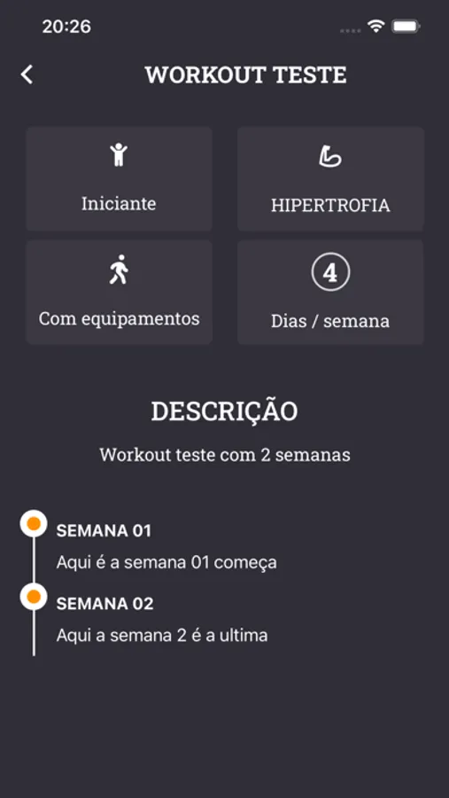 ##Depois de avaliar os seus dados pessoais e objetivos, vamos guiar você para a nossa lista de treinos. Conforme você for realizando os seus treinos, irá perceber que também temos uma parte reservada para relatórios de desempenho, onde será possível analisar quando realizar o aumento de carga e também observar dados corporais. Muito legal, não é mesmo?