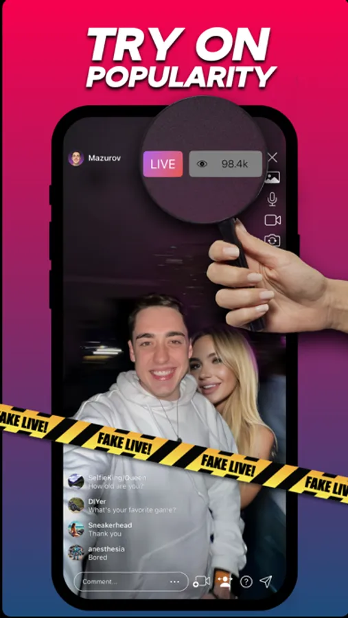 Fake Live is not just an app - it's an opportunity to get attention in an instant! Download it now and conquer the offline world!