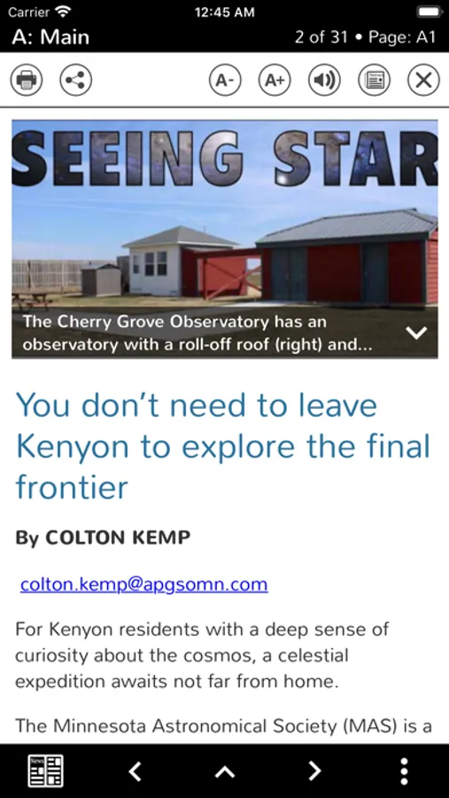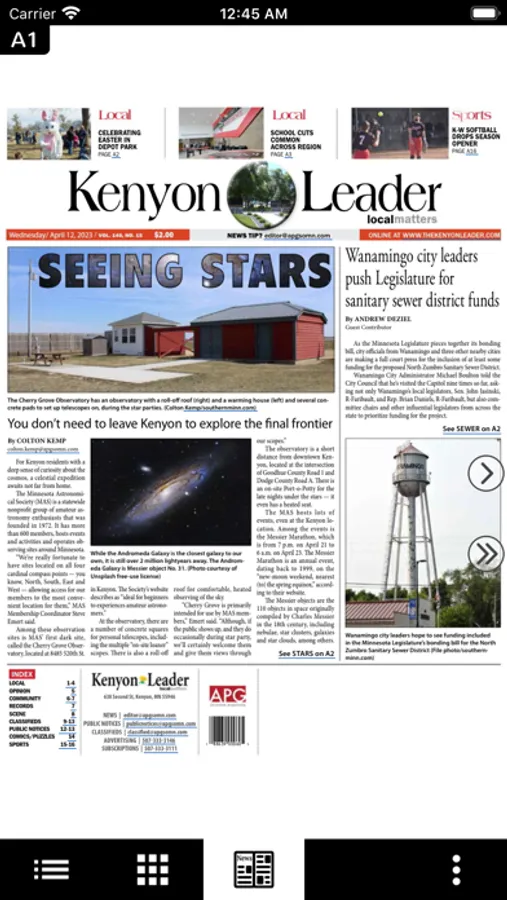 This is a digital replica of the printed Kenyon Leader. This app is part of your all access subscription. If you have questions about using the app please call Customer Service at (507) 333-3111.