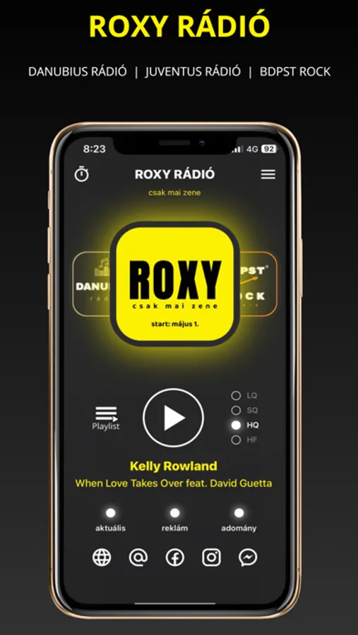 A Roxy Rádió mellett az appban megtalálod a Danubius Rádiót, a Juventus Rádiót és a BDPST ROCK-ot is.