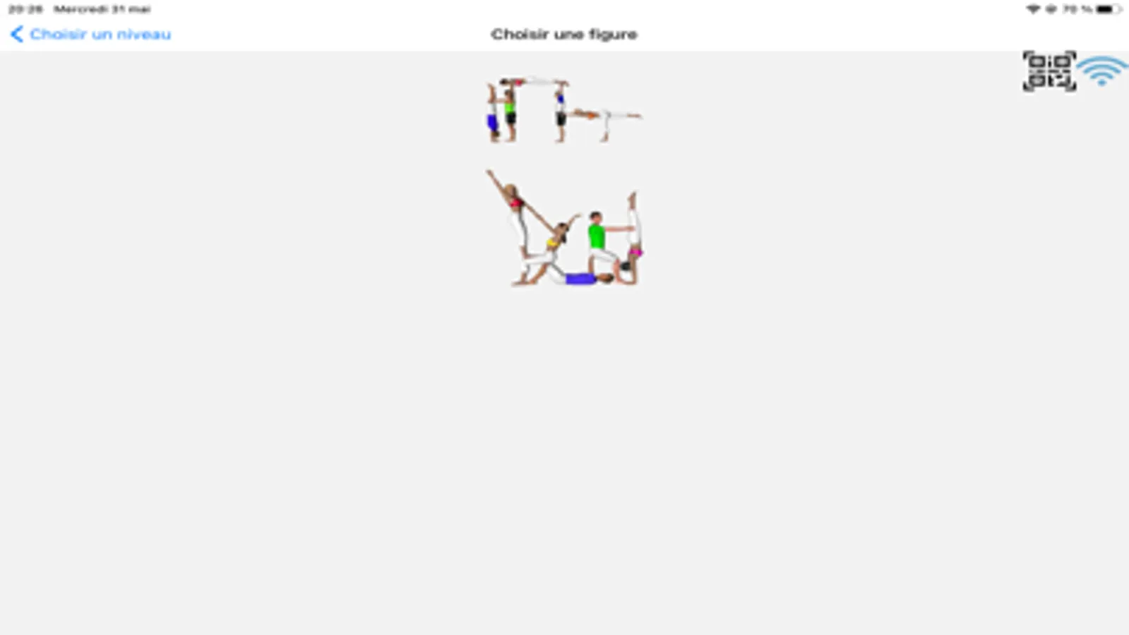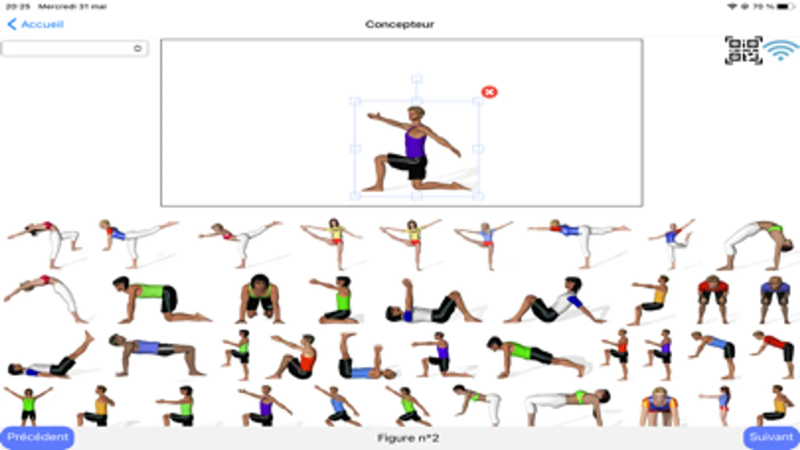 Cette application de réalisation de figure d’AcroSport permet au élèves plusieurs mode: un mode de réalisation où ils peuvent réaliser une liste de figure données, ainsi qu’un mode de conception qui permets aux élèves de créer leurs propres figures en vue d’un spectacle final par exemple.
