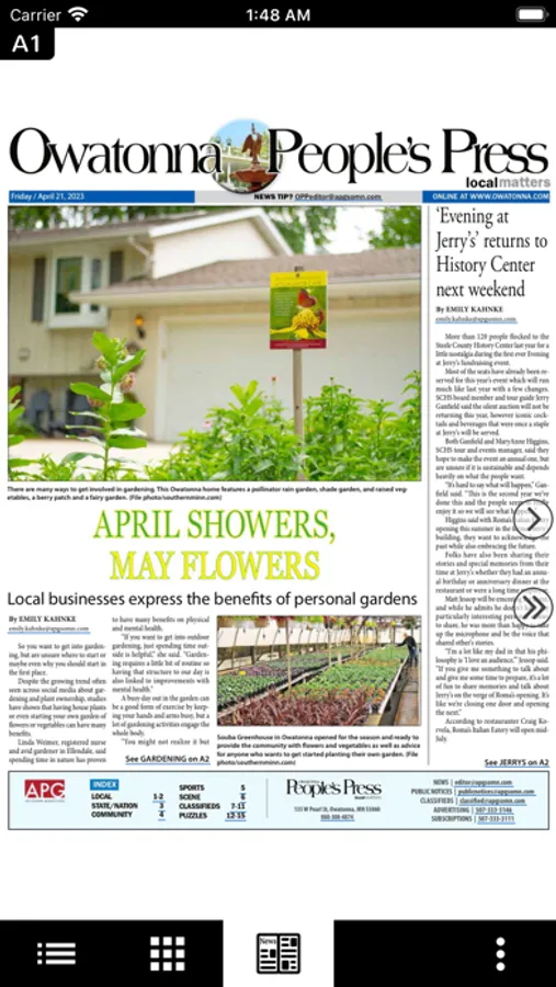 This is a digital replica of the printed Owatonna People’s Press. This app is part of your all access subscription. If you have questions about using the app please call Customer Service at (507) 333-3111.