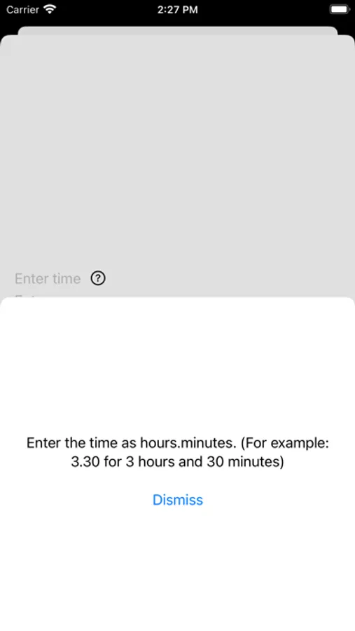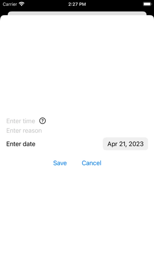 Easily add or subtract from your running total of time. Give each entry a date, reason and amount of time. For easy viewing, scroll through the list of ordered entries. To edit an entry, just tap on it, edit the part you would like, and save.