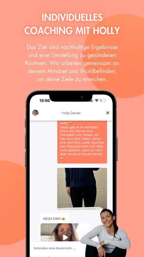 In dem individuellen Online Coaching mit Holly Davies und Team gehen wir direkt und vollkommen uneingeschränkt auf dich, deine Präferenzen und Bedürfnisse ein. Uns ist es besonders wichtig dir dabei zu helfen, dein Ziel nachhaltig und gesund zu erreichen, neue Routinen und Gewohnheiten zu entwickeln und in deinen Alltag zu integrieren.,Wir legen sehr viel Wert darauf, deine persönlichen Trainings- und Ernährungspläne an deinen Alltag, deine Ziele und Erfahrungslevel zu anzupassen.
