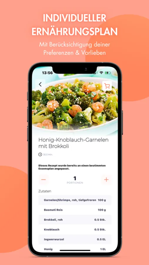 • Ein Ernährungsplan, auf deinen Kalorienbedarf, Unverträglichkeiten und Präferenzen angepasst
