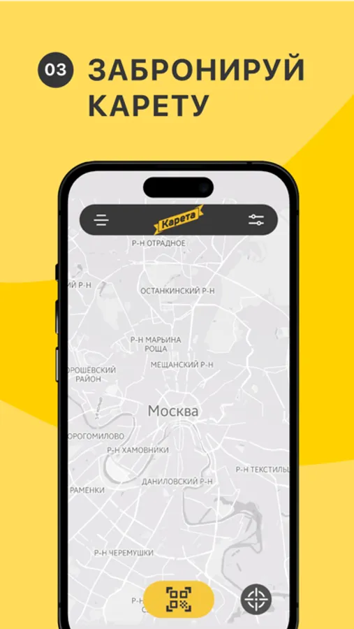 - Сервис будет полезен для развития инфраструктуры парков, так как является удобной альтернативой пешим прогулкам, решает проблему перемещения групп посетителей на дальние расстояния в глубь территорий делая доступнее значимые объекты парка.- «Карета» ведёт деятельность на территории парков и пешеходных зон по оказа¬нию услуг проката (шеринга) веломобилей;