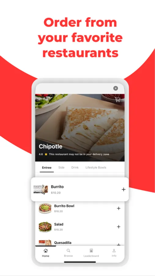 Taisty offers a variety of national restaurants from already existing delivery services. Indulge in mouthwatering meals from Chick-Fil-A, Chipotle, Taco Bell, KFC, McDonald's, Burger King, and many more to come. We strive to bring you the best dining experiences from your favorite brands. *Restaurant Menus are updated internally and may not always immediately reflect real-time menus.*