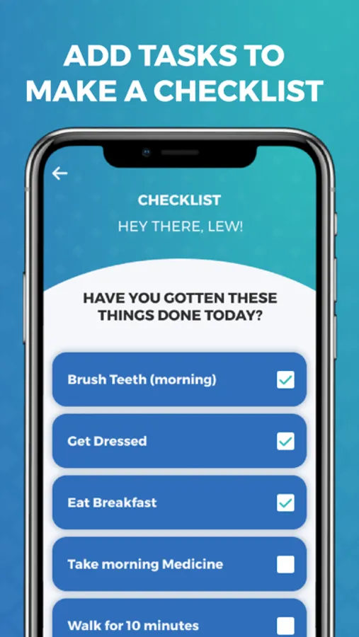 Checklist- Create task lists, like brushing teeth, taking medicine, etc. Set priorities and monitor progress