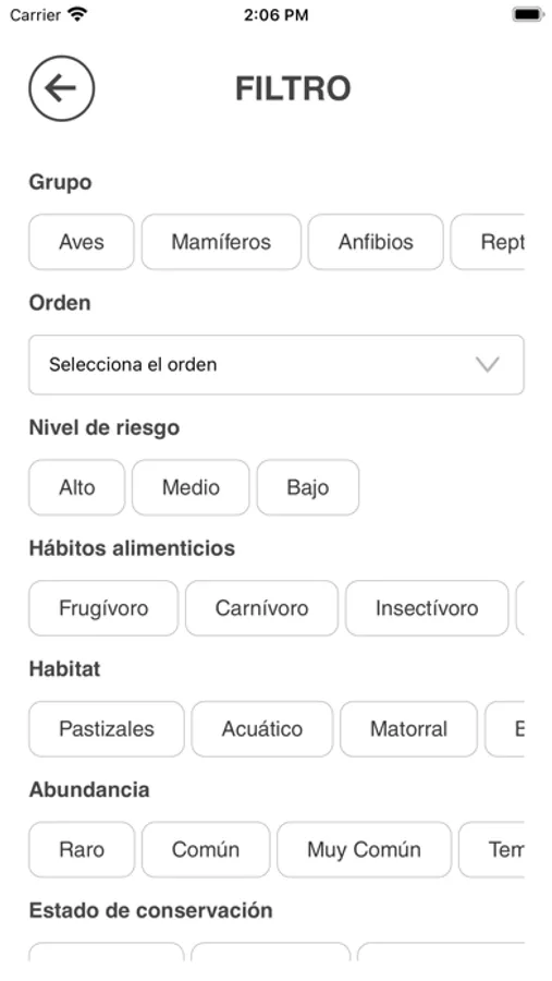 Consulta aves, mamíferos, anfibios y reptiles en tu zona. Usa los filtros para encontrar el animal que buscas.