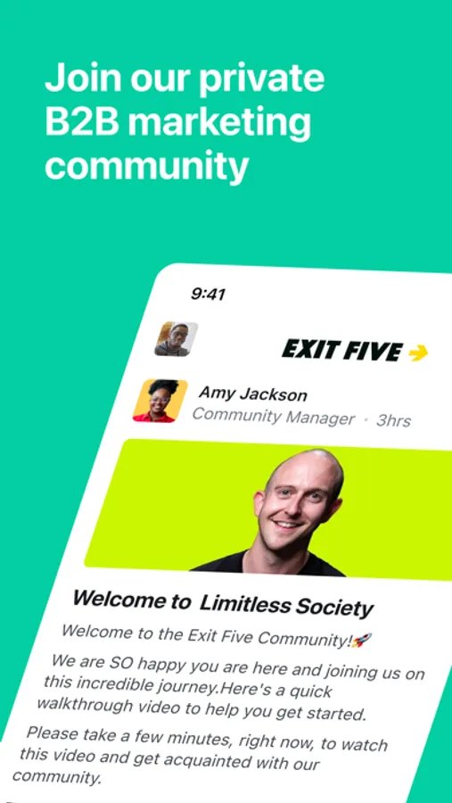 Exit Five is a private community for B2B marketing professionals to connect with peers, share feedback, get ideas, and inspiration to help grow your business and your career in marketing.