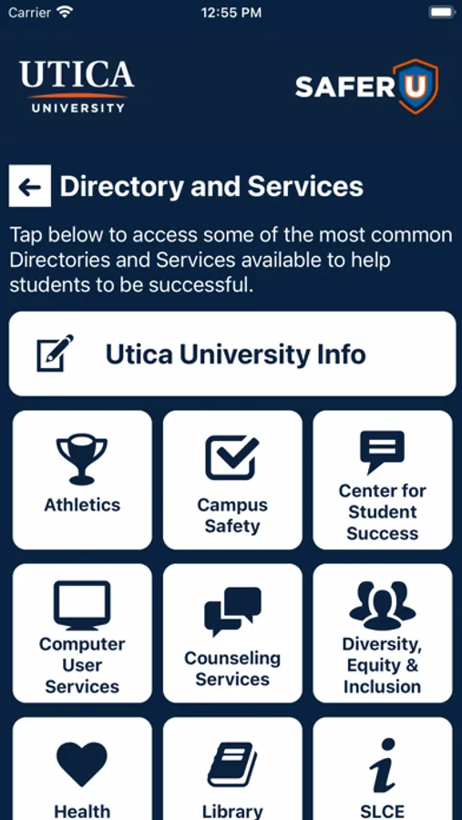 - Directory and Services: Access support resources in one convenient app to enjoy a successful experience at Utica University.