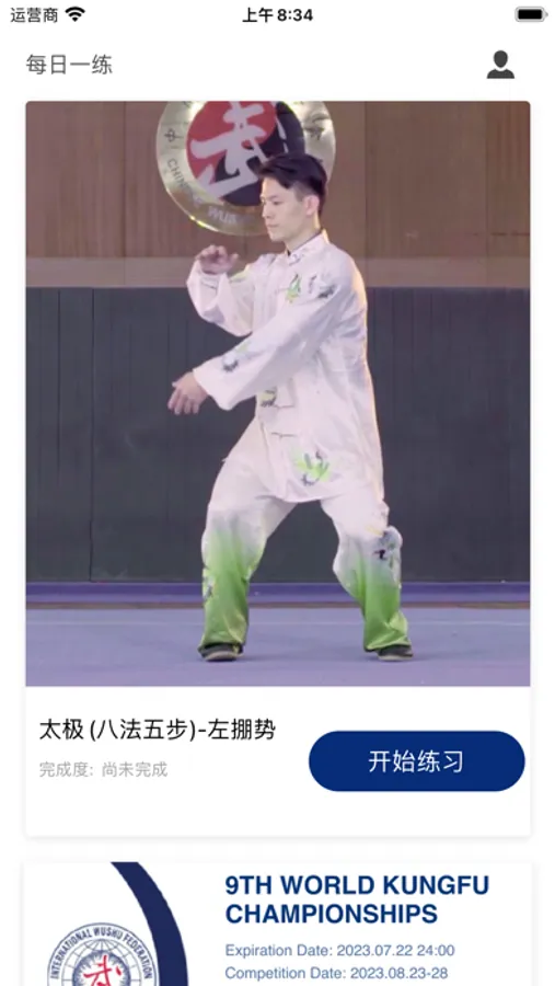 AI武术APP为国际武联官方App,提供太极八法五步每日一练、闯关等功能,并集成赛事管理等相关信息,使用者通过App可以实时查看特定赛事的检录、出场顺序、比赛实况与成绩公告等信息