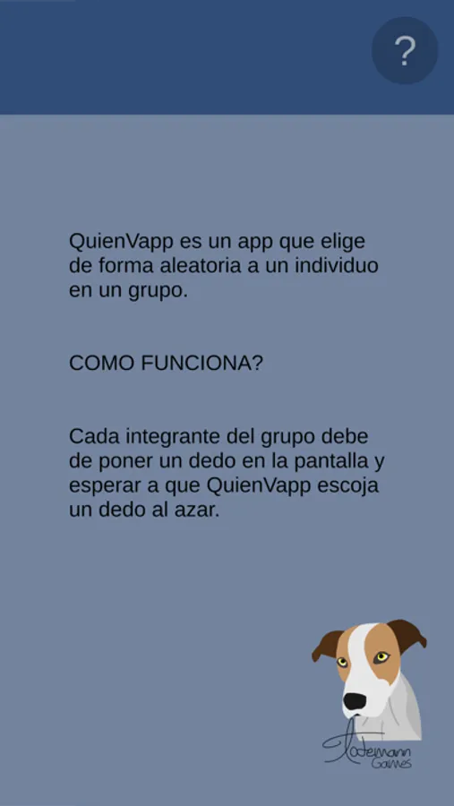 QuienVapp es un app que elige de forma aleatoria a un individuo en un grupo. Es también conocido como un Finger Chooser app.