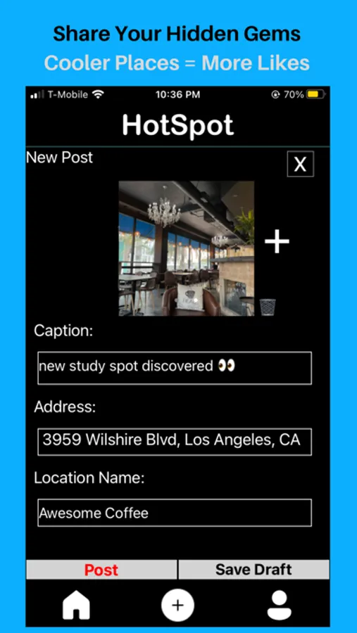 • Next time you're looking for something to do, just open up HotSpot and look through your saved posts to see a list of places that you were interested in.
