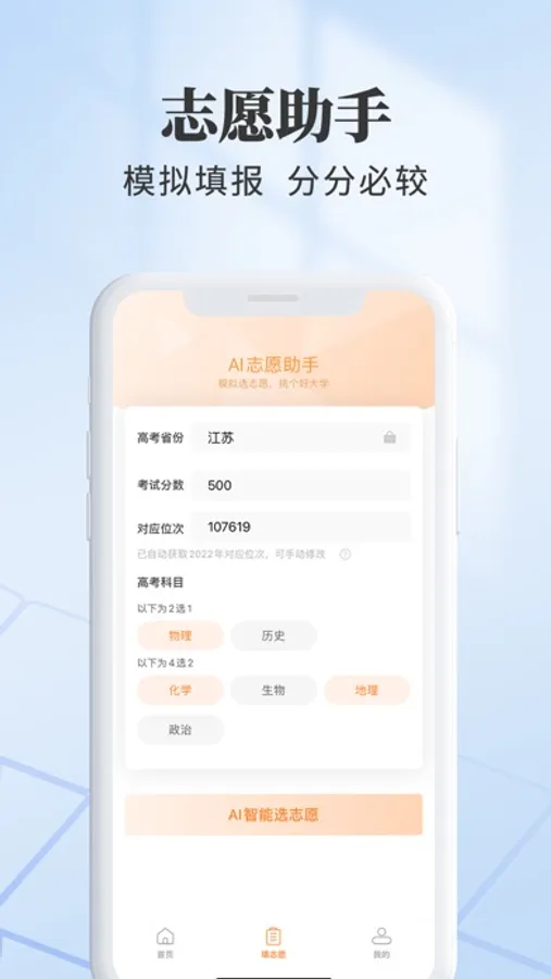 高考志愿填报,为高考生量身定制的志愿填报工具。高考报考方向规划、招生政策、报考大学,高考志愿填报APP全面了解所需信息,点亮考生的高考升学之路。