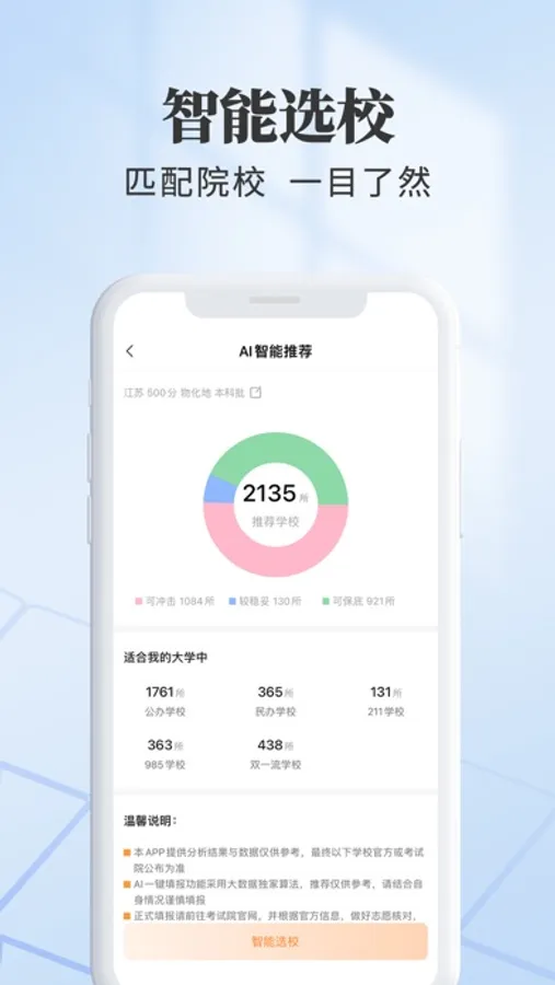 【院校库】覆盖国内各大高校,想查询的985/211/高校情况随时掌握,帮考生快速选择心仪大学;