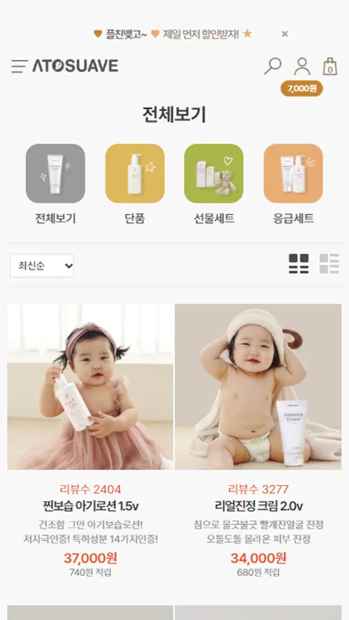 아토수아베는 20년 병원화장품 이엔코스의 아기브랜드입니다.