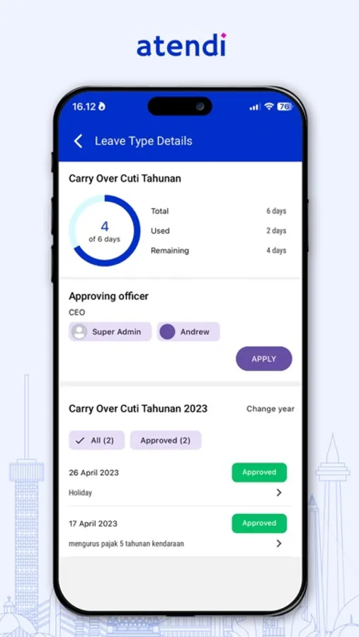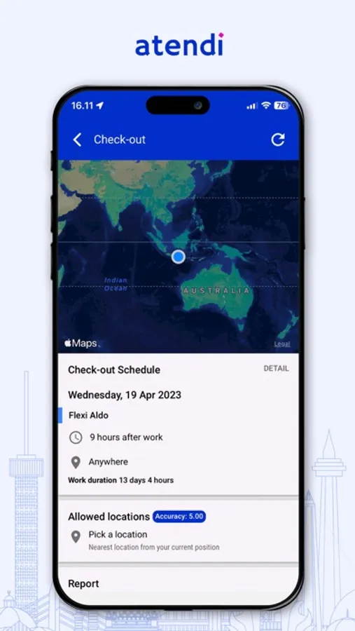 Atendi is an attendance management app for the Digital Transformation era. It is suitable for office, remote, factories, and F&B workers. It has flexible scheduling system such as fixed, flexible or shifts schedule. It is also a location-based attendance system for check-in, check-out and customer visits.