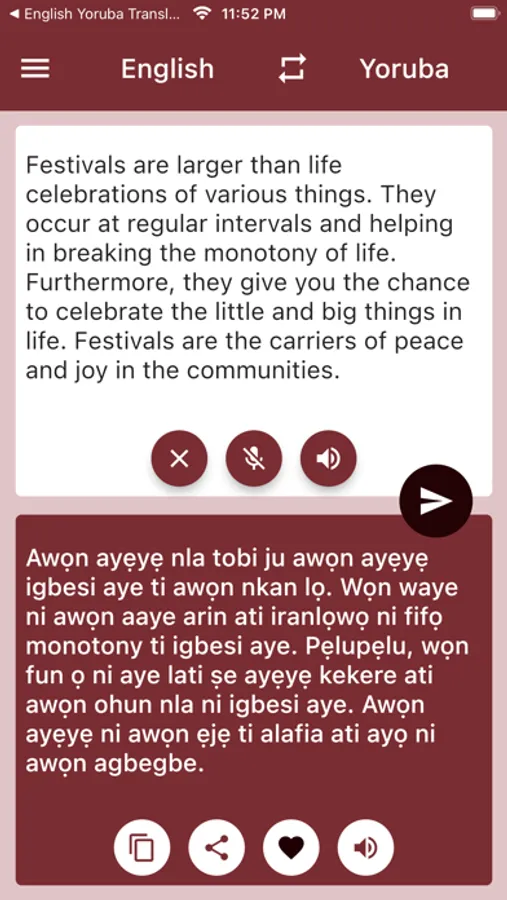 Whether you're traveling, studying, or simply communicating with friends and colleagues, the English Yoruba Translator app makes it easy to break down language barriers and communicate effectively. Try it out today and experience the ease and convenience of accurate translation at your fingertips.