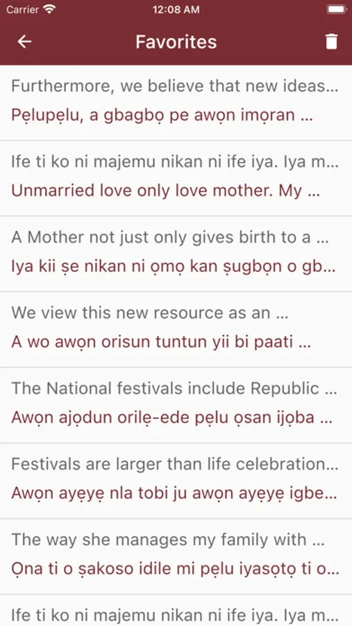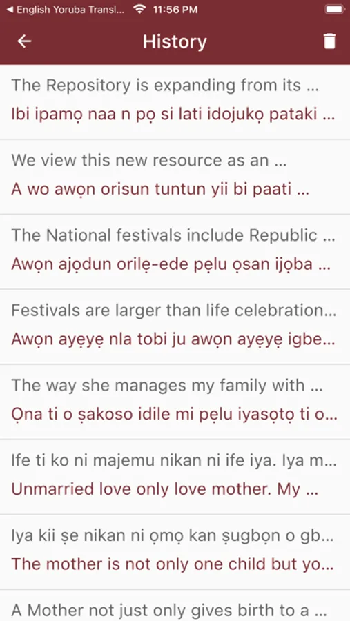 Additionally, the English Yoruba Translator app stores your translation history, allowing you to quickly refer back to previous translations without having to re-translate the same text. This is especially useful for phrases or sentences that you may need to use frequently.