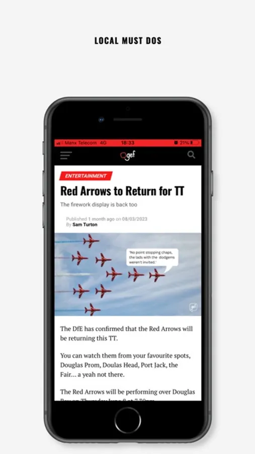A bold and spirited online magazine and news platform based on the Isle of Man, featuring local views, opinions and must-dos. Covering community news, politics, sport, lifestyle and entertainment, alongside humorous and insightful features and opinion pieces.