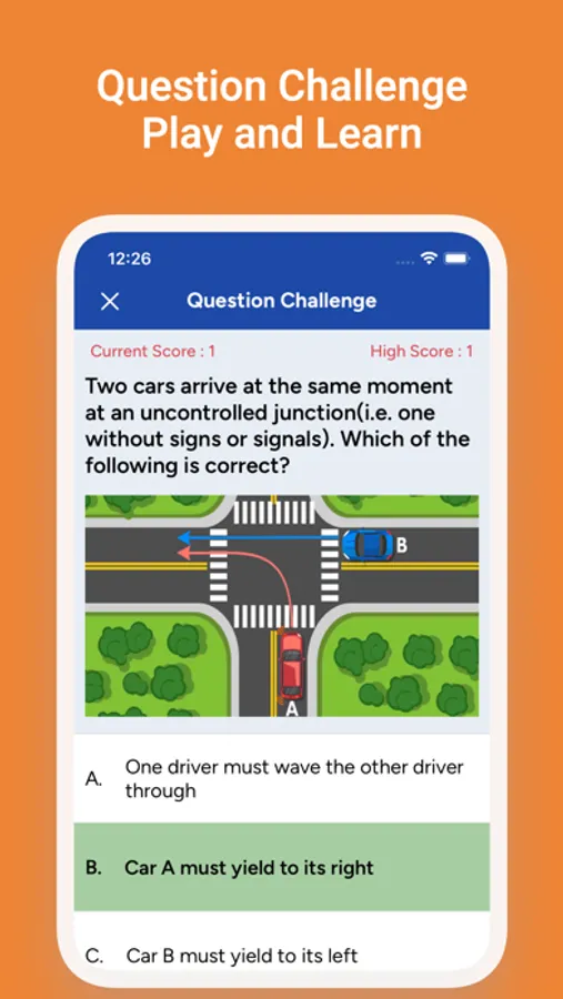 This is a unique feature of our application. It allows you learn while playing a challenge game. Your score will go up by one point each time you correctly answer a question up until the point where you get it wrong. It keeps record of your high score.