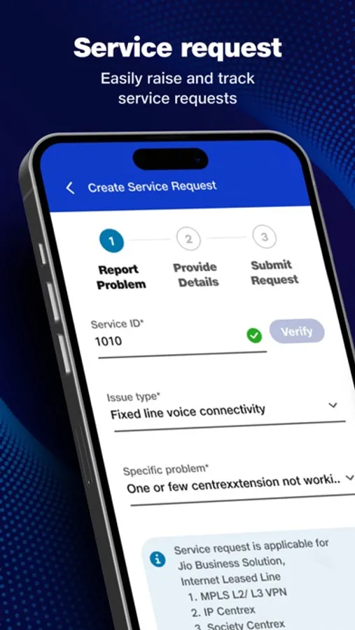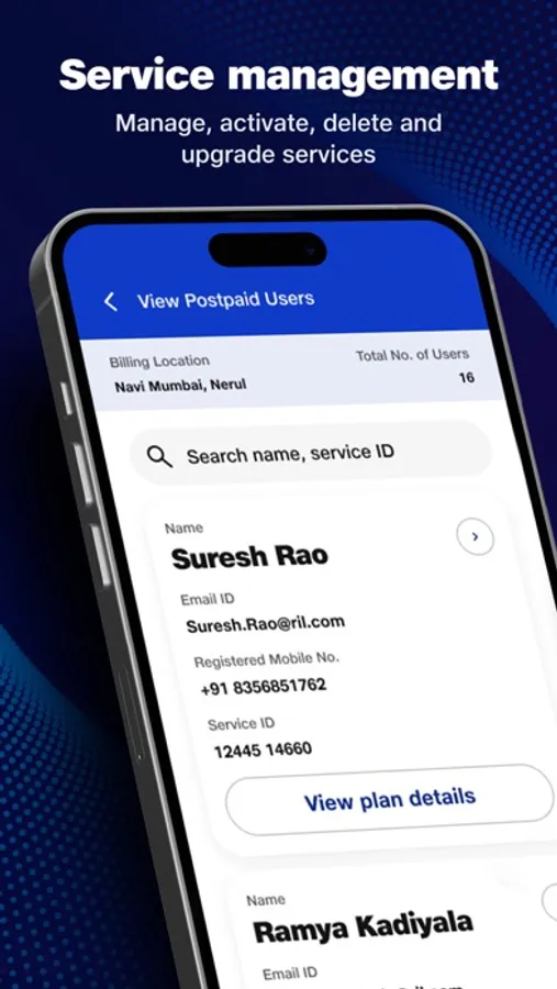 Jio Business SMB Enterprise app enables you to manage all the enterprise services (wireline, wireless & SaaS) in an easy way. The App caters to wide range of account level management features, wherein a Jio Business customers can view, manage, configure, monitor, make payment and raise query, etc. in few clicks.