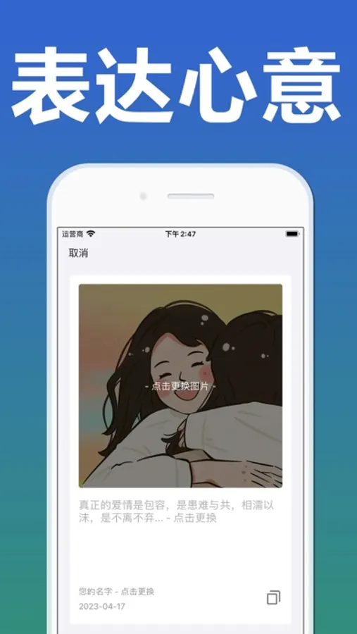 下载体验一下吧!把您想说的话通过送信APP告诉他或是她。