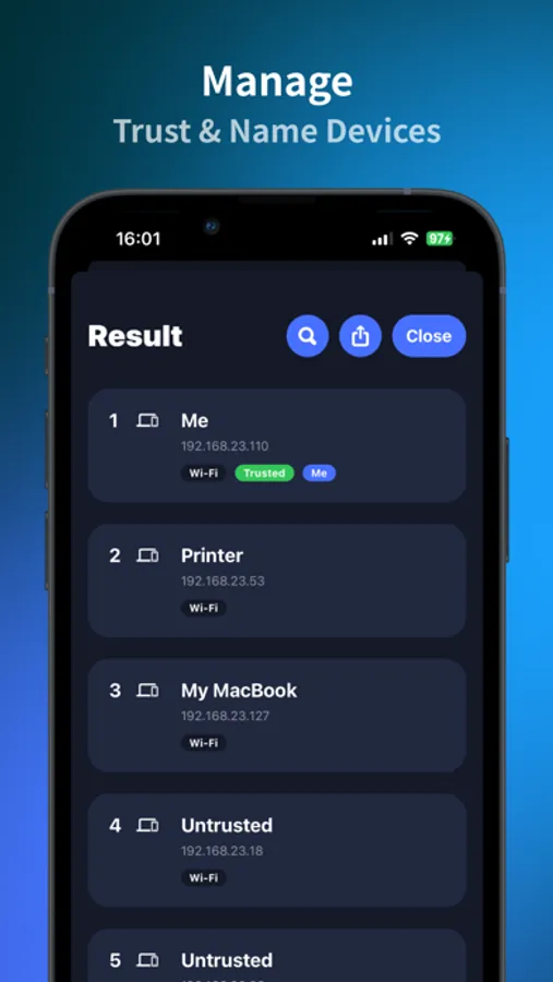 - Discovers suspicious devices connected to the network within seconds