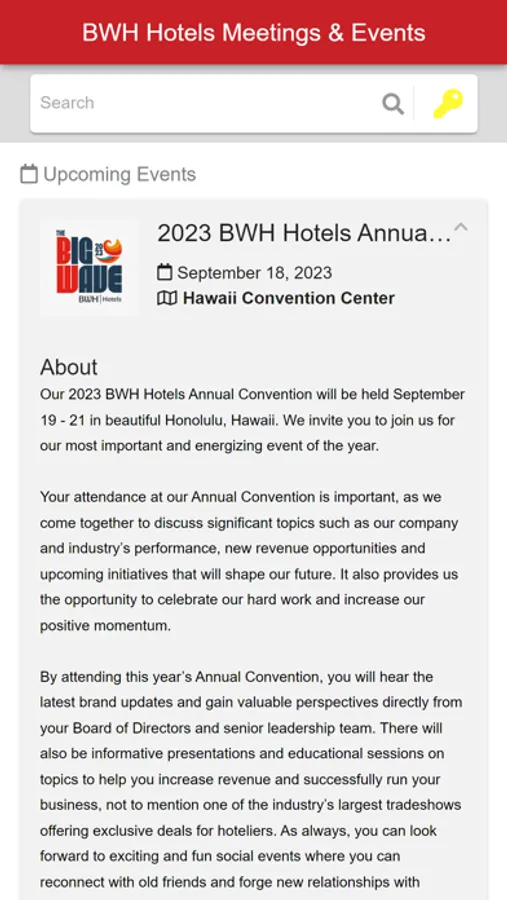 Each year, we come together in the spring for our District Meetings and in the fall at our Annual Convention. These meetings are where you can learn about key brand initiatives and add your voice in shaping Best Western’s future. It also gives us the chance to work collaboratively to overcome our business challenges and to take advantage of new areas of opportunity. This mobile app will help you navigate each of our upcoming meetings and learn important event information.
