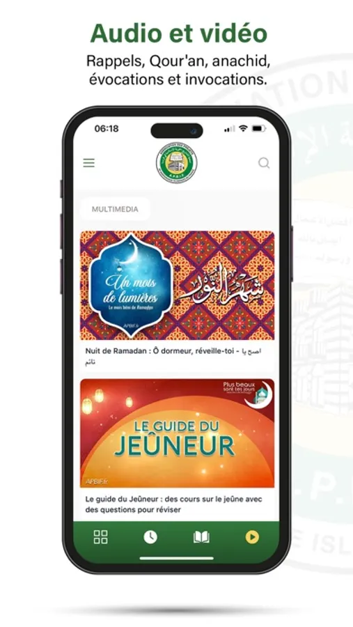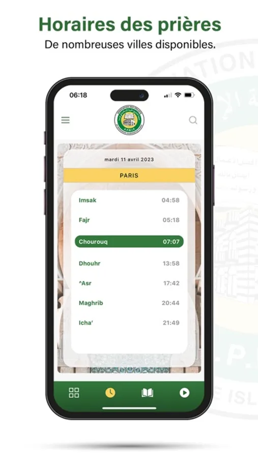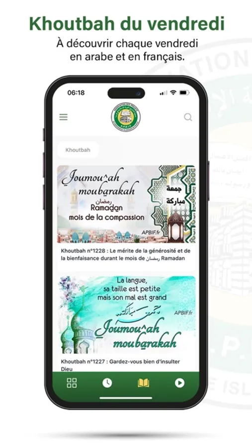 Horaires des prières. Ecouter le Qour’an (Coran). Khoutbah du vendredi. Invocations et évocations. Rappels islamiques. Explications des fêtes musulmanes. Comment faire la prière ? Histoire musulmane. Calendrier Ramadan. Anachid.