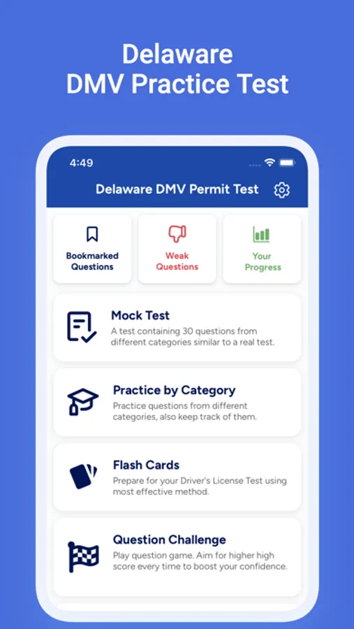 Followings are the features of Delaware DMV Permit Practice Test 2023 app.