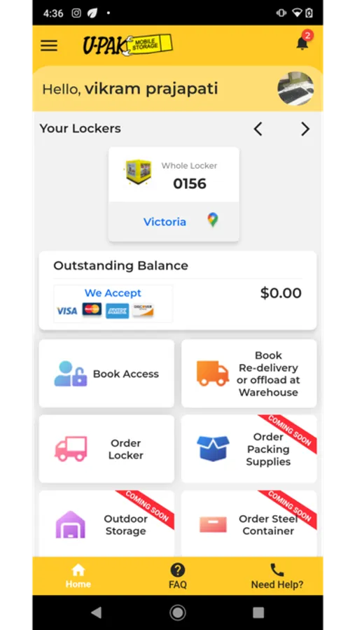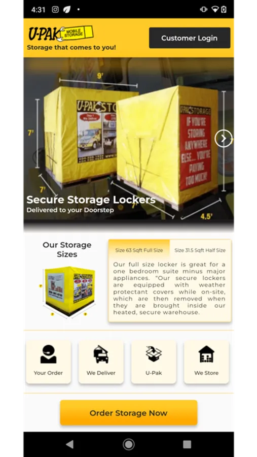 UPAK Storage provides mobile storage lockers, vehicle storage, On & Off the Rock, Loading & Packing Supplies Services. UPAK mobile application is designed for it's customers to order storage locker, book a locker access, book locker delivery, account statement and instructions to pay outstanding balance.