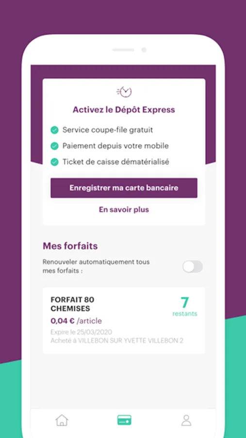 • DÉPÔT EXPRESS* : Profitez du Dépôt Express*, un service coupe-file gratuit qui vous permet de déposer vos vêtements sans faire la queue. Vous recevez votre ticket quelques minutes plus tard et payez automatiquement depuis votre application 5àsec. Vous gagnez du temps !