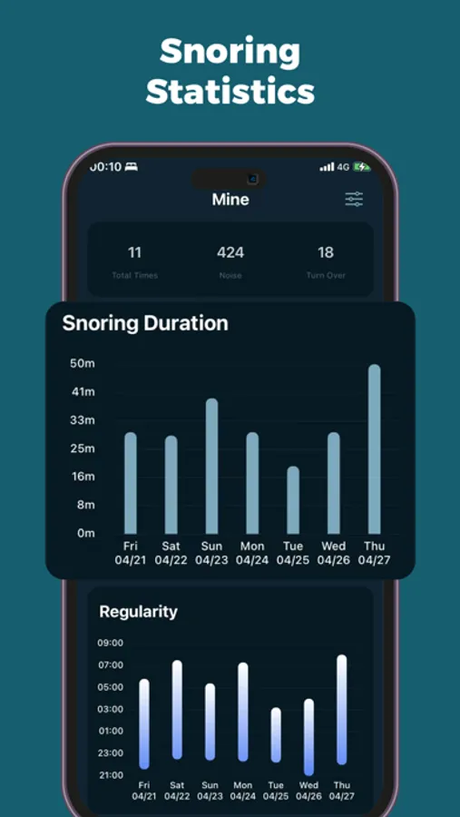 -Sleep Trend: Continuously track your sleep status, and the trend graph shows in detail your recent sleep status (sleep pattern, wake-up time, bedtime, sleep talk duration, snoring duration, REM duration, anti-snoring assistance times, etc.). Provides digital evidence for improving your sleep.