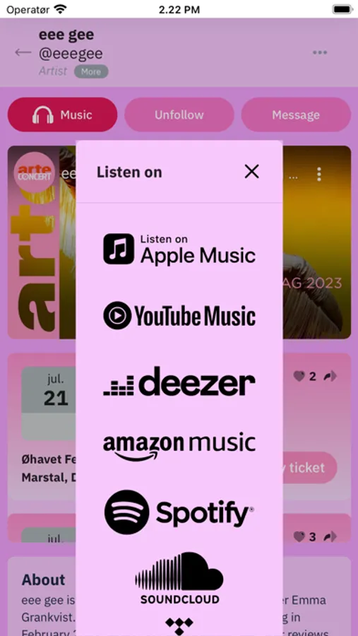 · Creator Profile Media Section: Integrate playlists from Spotify or SoundCloud, embed YouTube videos, and showcase your concert calendar to keep your audience engaged and informed.