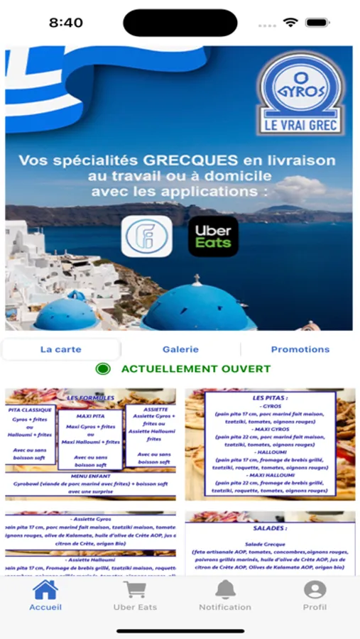 Bienvenue chez O Gyros, votre destination préférée pour déguster les saveurs authentiques et délicieuses de la cuisine grecque ! Notre application mobile vous ouvre les portes de notre univers culinaire, vous permettant de savourer nos délices où que vous soyez.