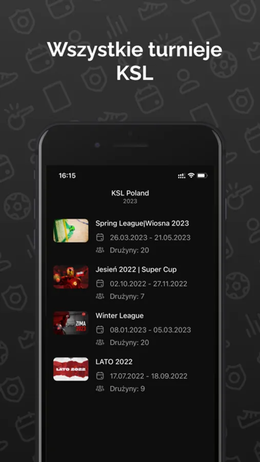 W aplikacji znajdziesz wszystko o turniejach KSL: terminarz meczów i szczegółowe wyniki, zawsze aktualne tabele i statystyki osobiste, świeże informacje i zapowiedzi nadchodzących wydarzeń.