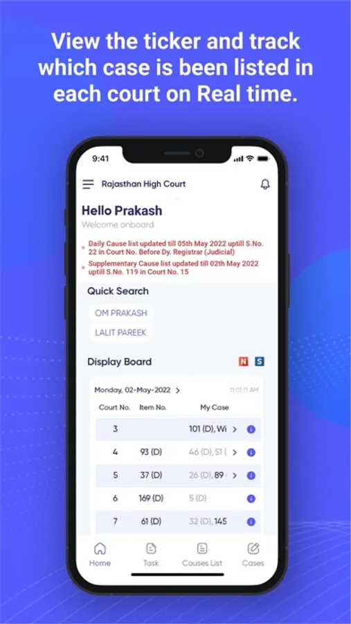 Causelist : The causelists are automatically updated once they are available on the High Court website and a push alert notifies the update. The causelists of individual lawyer or of an office can be pre-set to review/print the listed cases, thus saving the effort of daily mundane task of manually searching/printing for one’s name in the causelist. Also, if certain cases have been transferred to another lawyer, that can be set to let that not appear ever again in the quick search. Finally, a pre-set can be done on a particular case number as well to monitor/track a particular matter.